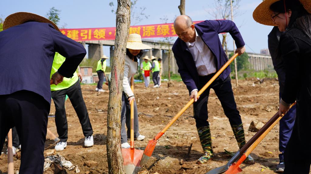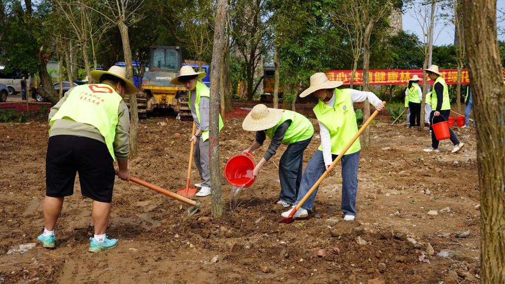 随着一声令下,大家满怀热情地挥锹、铲土、栽种、浇水……三五人一组,团结协作、干劲十足。很快,100棵黄花风铃木树苗迎风挺立,为乡村增添了一抹春意、一道生机盎然的风景线。