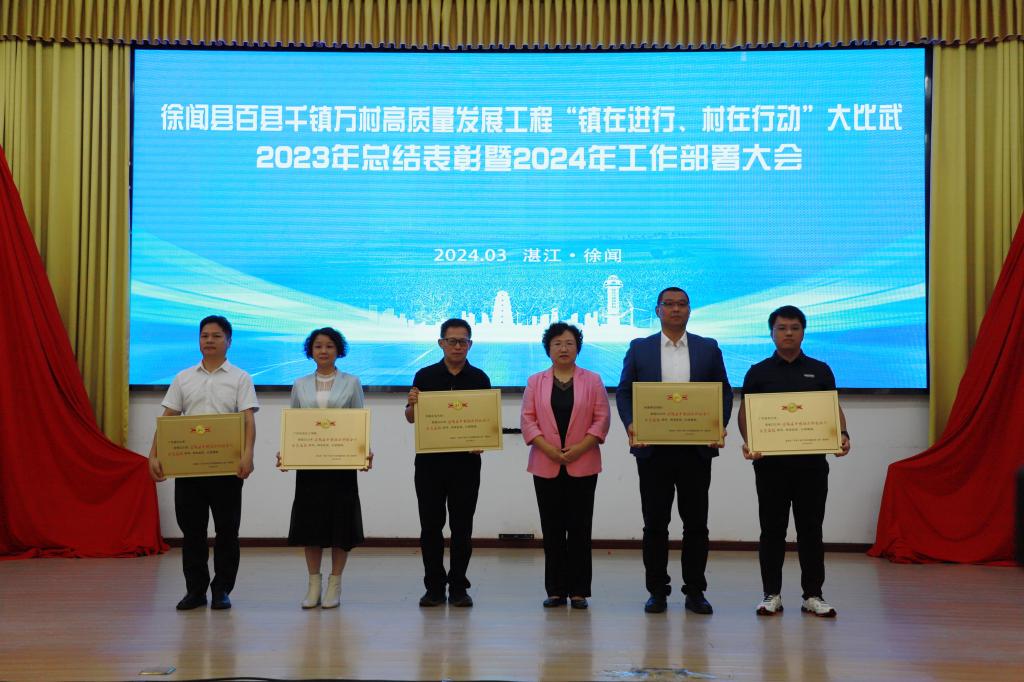 3月18日上午,徐闻县委、县政府在县会议中心举行“百千万工程”“镇在进行、村在行动”大比武2023年总结表彰暨2024年工作部署大会。会上,评选出2023年为徐闻县百千万工程、乡村振兴工作作出突出贡献的单位与个人进行总结表彰,学校获评“2023年徐闻县乡村振兴科创合作示范高校”称号。会议由徐闻县县长黄来兴主持,县党委书记罗红霞出席讲话并颁奖。