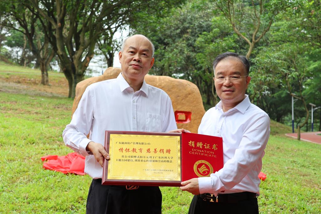 “知园”和“求真亭”由广东能润资产管理有限公司捐资建设。广东能润资产管理有限公司张能勇董事长一直热心教育、医疗公益事业,关心支持学校的建设发展,不仅捐资200万建设学校的“知园”,还捐赠1000万在附属医院建设“学术报告厅”,设立“名医学者”培育基金。在张能勇董事长的大力支持下,学校还“牵手”蕉岭,打造“百千万工程”县域医疗卫生能力提升“蕉岭模式”,并共建“健康科技小院”,为学校实现大学的价值提供了资金和平台的支持。