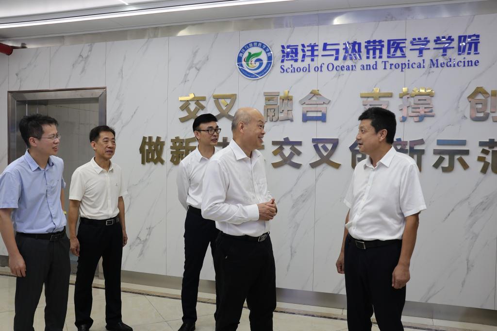 李多民一行观看了“牢记初心担使命,争做育人大先生”(2022—2024)成果展、“大力弘扬教育家精神、争做新时代育人大先生”展,走访了海洋与热带医学学院,与学校领导和教师代表进行了交流,关切询问教师们的工作及生活情况,感谢他们长期以来默默奉献、辛勤工作,为湛江教育事业发展作出了积极贡献。