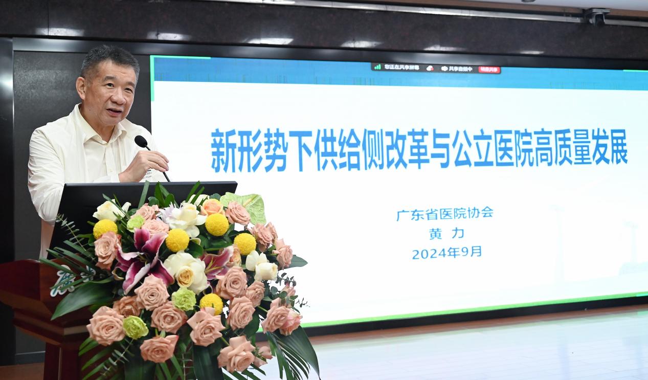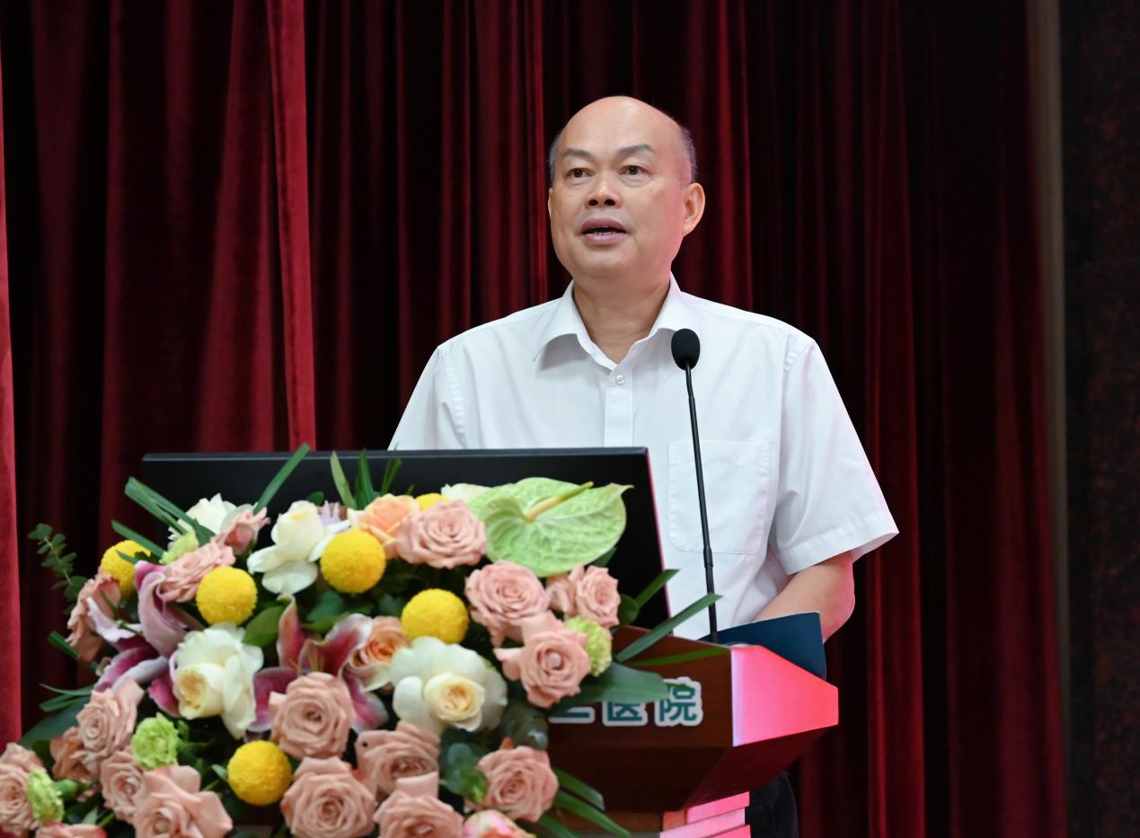 黄力代表广东省医院协会向广东医附二院升级三级甲等综合医院表示热烈的祝贺。他表示,广东医附二院具有百年历史积淀,医教研根基坚固,学科优势明显,并对医院的综合实力和医疗服务水平表示充分认可。升级“三甲”医院是发展的新起点,广东省医院协会将一如既往地关注和支持广东医附二院的发展,积极搭建交流平台、做好做实各项服务工作,助力医院在高质量发展的新征程上不断向前迈进。希望广东医附二院能够充分发挥自身优势,树立标杆引领作用,带动粤西地区乃至全省医疗卫生事业的协同发展,为健康广东贡献强大力量。