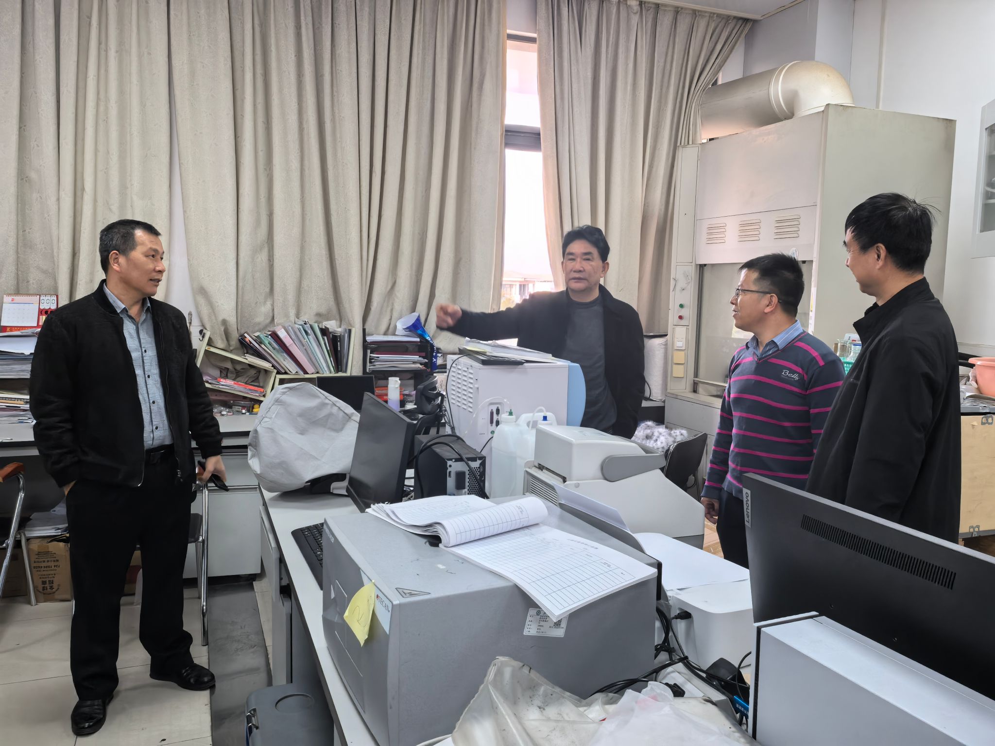 为确保教学科研实验室在秋季学期期末及2025年寒假期间的平稳运行,1月6日和8日,学校党委副书记黄达海、副校长丁元林分别在湛江和东莞两校区,带领资产设备管理部、保卫部、总务后勤部等相关职能部门开展全面而细致的期末实验室安全大检查。此次大检查覆盖了各级各类实验室、危险化学品存储区、废弃物暂存站等安全关键区域,深入排查潜在的安全隐患,督促相关责任单位及时整改。