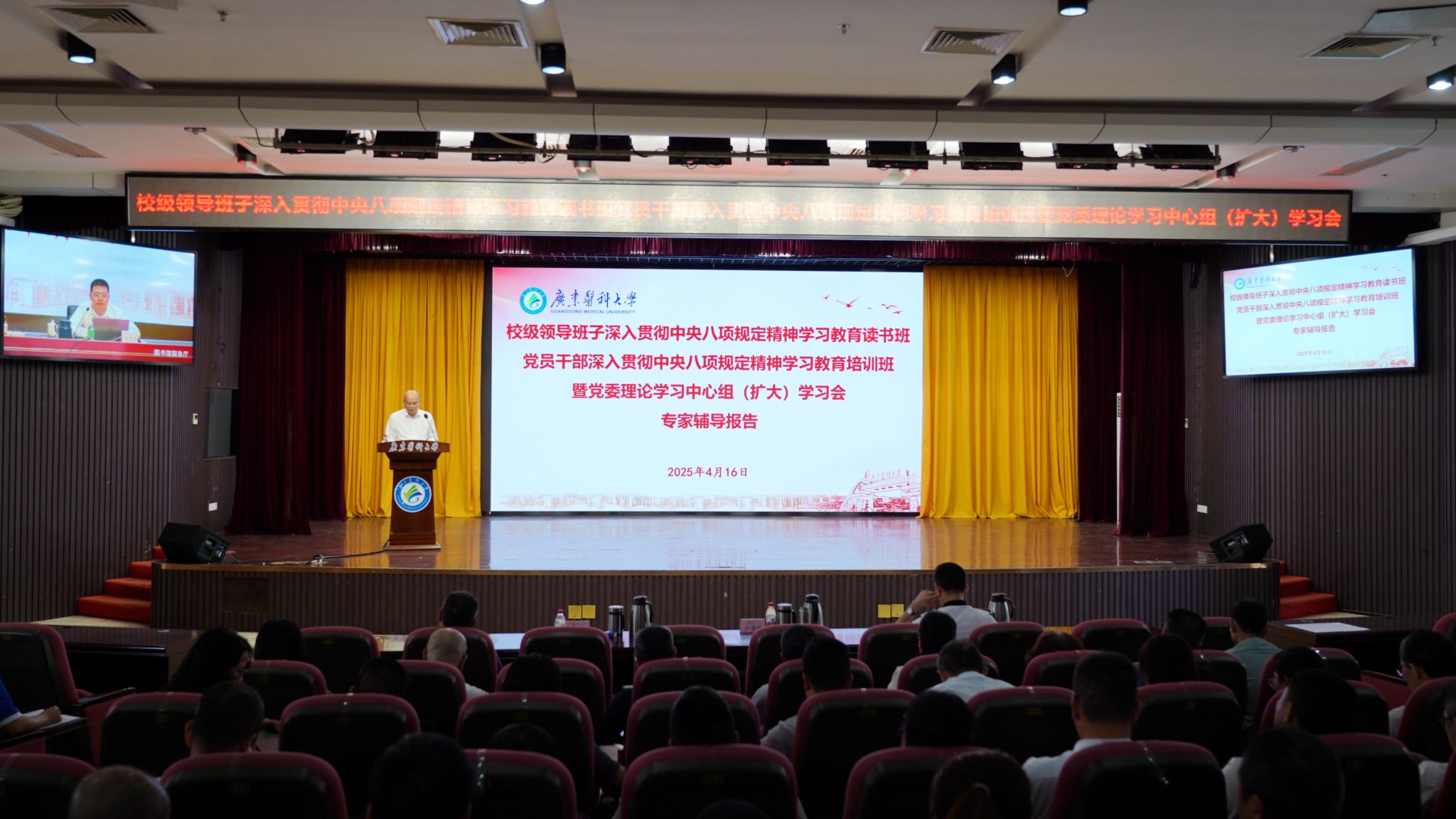 2025年4月16日下午,学校举行校级领导班子读书班、党员干部培训班暨党委英国上市公司365中心组(扩大)学习会议,专题学习贯彻中央八项规定及其实施细则精神。广东省委党校党建研究中心副主任张克兵副教授作专题辅导报告。学校党委书记、校长卢景辉主持报告会。