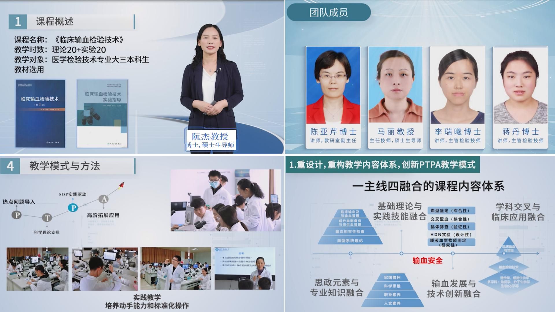 临床输血检验技术课程依托国家一流本科专业建设点——医学检验技术(输血检验特色创新班),构建“教师-行业专家-学生”三位一体的教学共同体,搭建“校-院-企”协同育人平台。课程引入OBE理念,紧密对接行业标准与技术前沿,创新实施PTPA教学模式,全面提升学生岗位胜任力,致力于培养符合新时代要求的高素质专业人才。