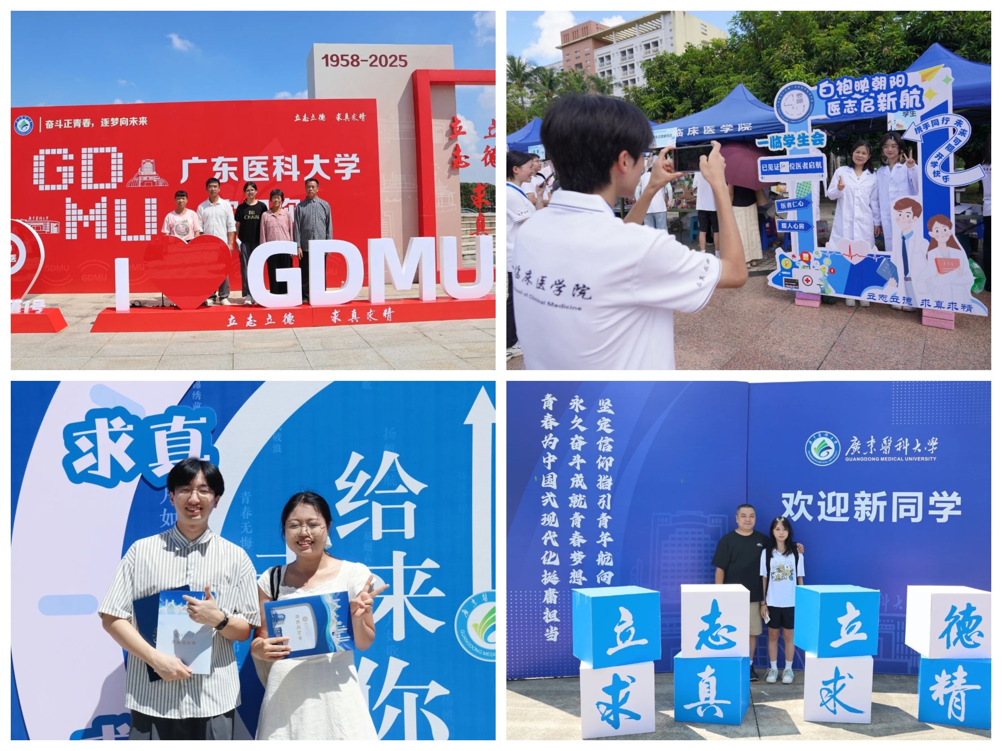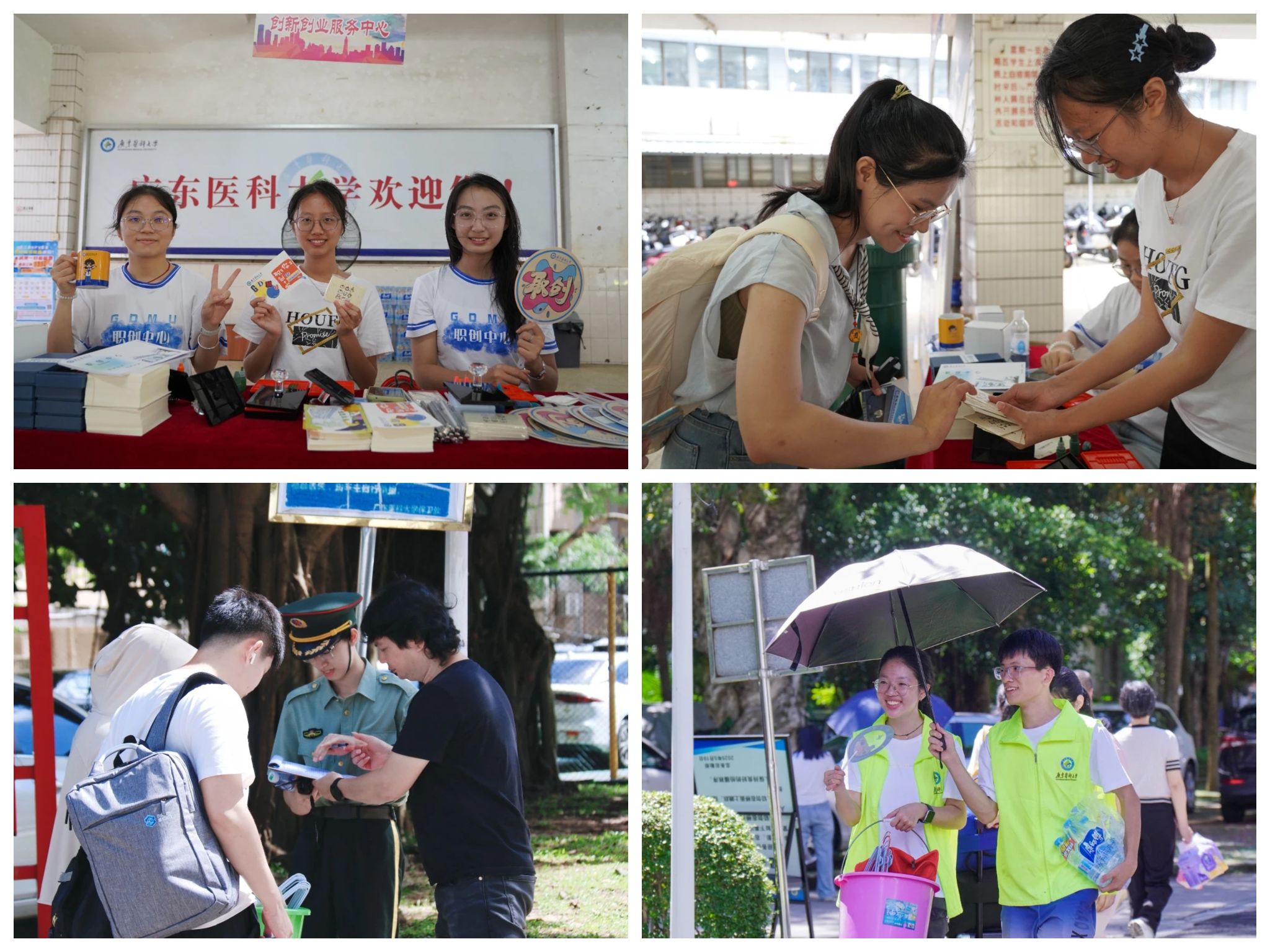 新生报到现场有很多温馨的场景,有的家庭全家总动员,爷爷奶奶、爸爸妈妈都来相送,还有的新生家长坐火车从北到南,奔波数千公里来到广东医和孩子一起分享入学的喜悦,学校提供便捷贴心的迎新服务。入学前,分班、分宿舍都在线上完成,辅导员也早早进入新生群。