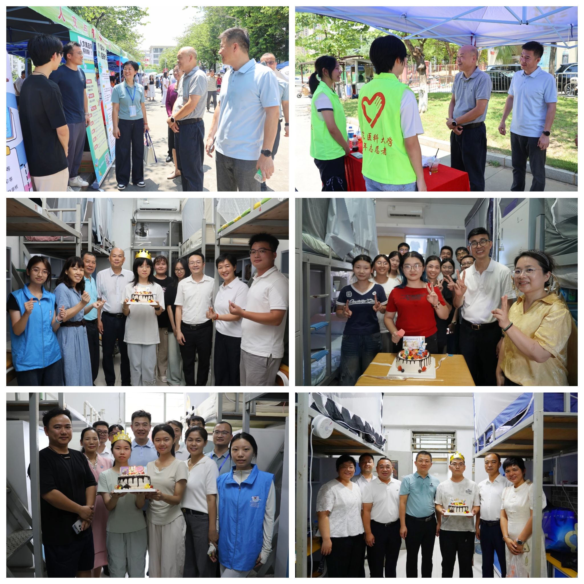 迎新期间,学校领导来到迎新现场,与新生和家长沟通交流,并检查指导迎新工作。各个学院也是为新生提供了各项暖心的服务。第二临床医学院为新生送出了他们人生的第一件白大褂,祝愿他们牢记初心、行稳致远;公共卫生学院准备了“水心”的小零食。学校领导走访新生宿舍和他们拉家常,并为今天生日的同学们送上蛋糕。学校党委书记、校长卢景辉亲切地说:“要提前规划大学生涯,努力学习、提升自己,也要注意锻炼身体。”“借助好学校的平台,成为更好的自己。”2025级公共卫生学院李梓玲,刚好18岁生日,卢景辉书记校长为她送上成人礼蛋糕。她高兴地说:“很惊喜能够收到学校的礼物,谢谢老师和学校的精心准备。”一场特别的生日会成为新生们最温暖的归属。