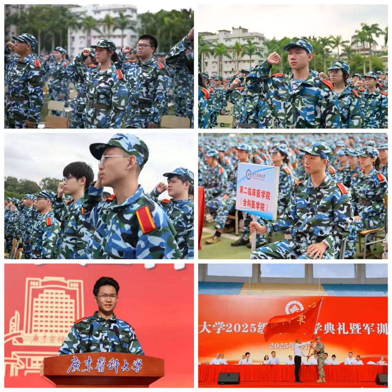 军训是大学的第一课是磨砺意志、锤炼品格的重要历程。卢景辉书记校长、黄达海副书记分别在东莞校区和湛江校区为军训团授予团旗。
