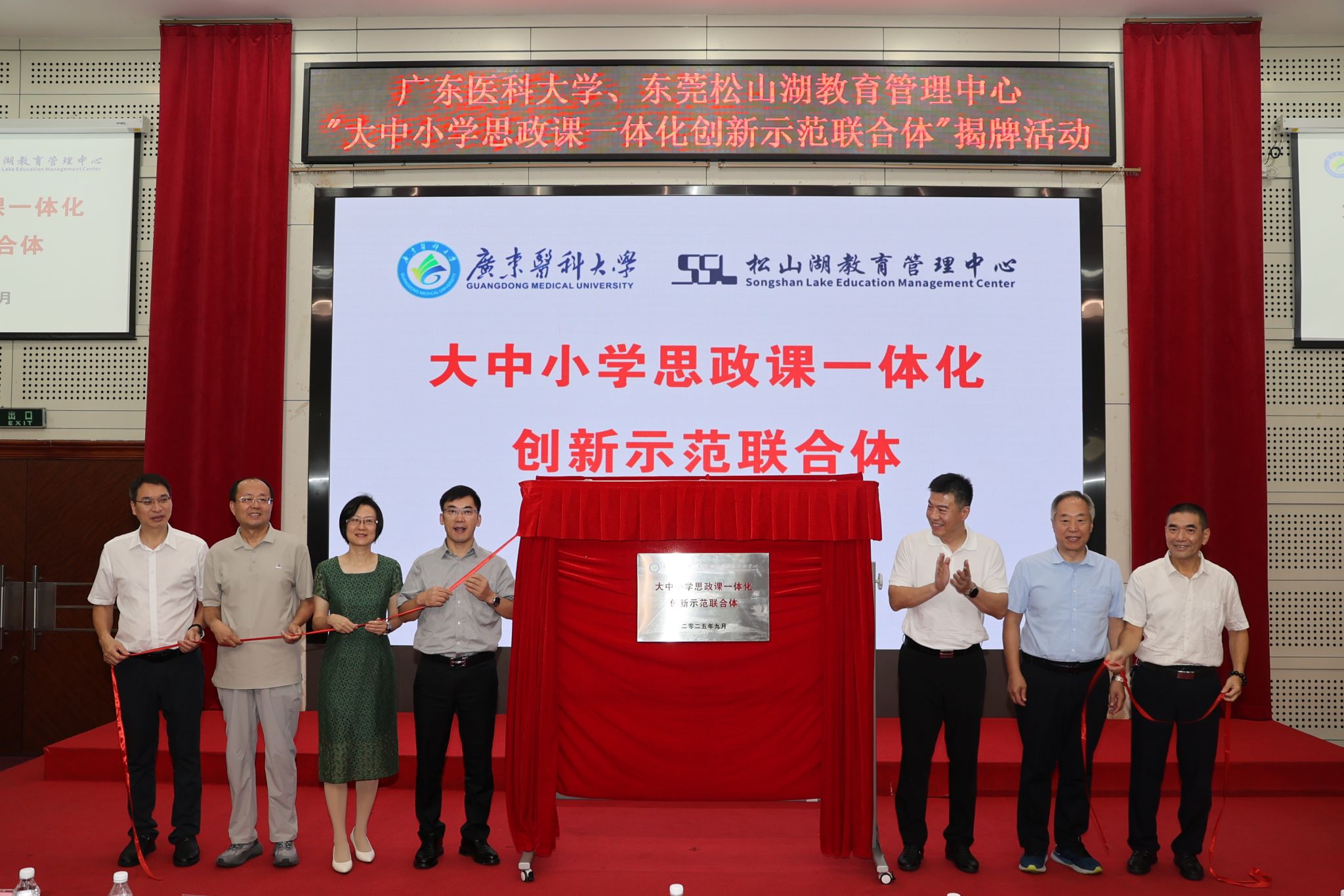 2025年9月19日上午,英国上市公司365与松山湖教育管理中心举行的“大中小学思政课一体化创新示范联合体”揭牌活动在我校进行。学校党委常委、副校长佟矿、松山湖宣传教育文体旅游局副局长曾鸣、松山湖多所中小学校长及思政课教师代表、我校全体思政课教师等共160余人参加了此次会议。会议由学校马克思主义学院党委副书记、院长金卓主持。