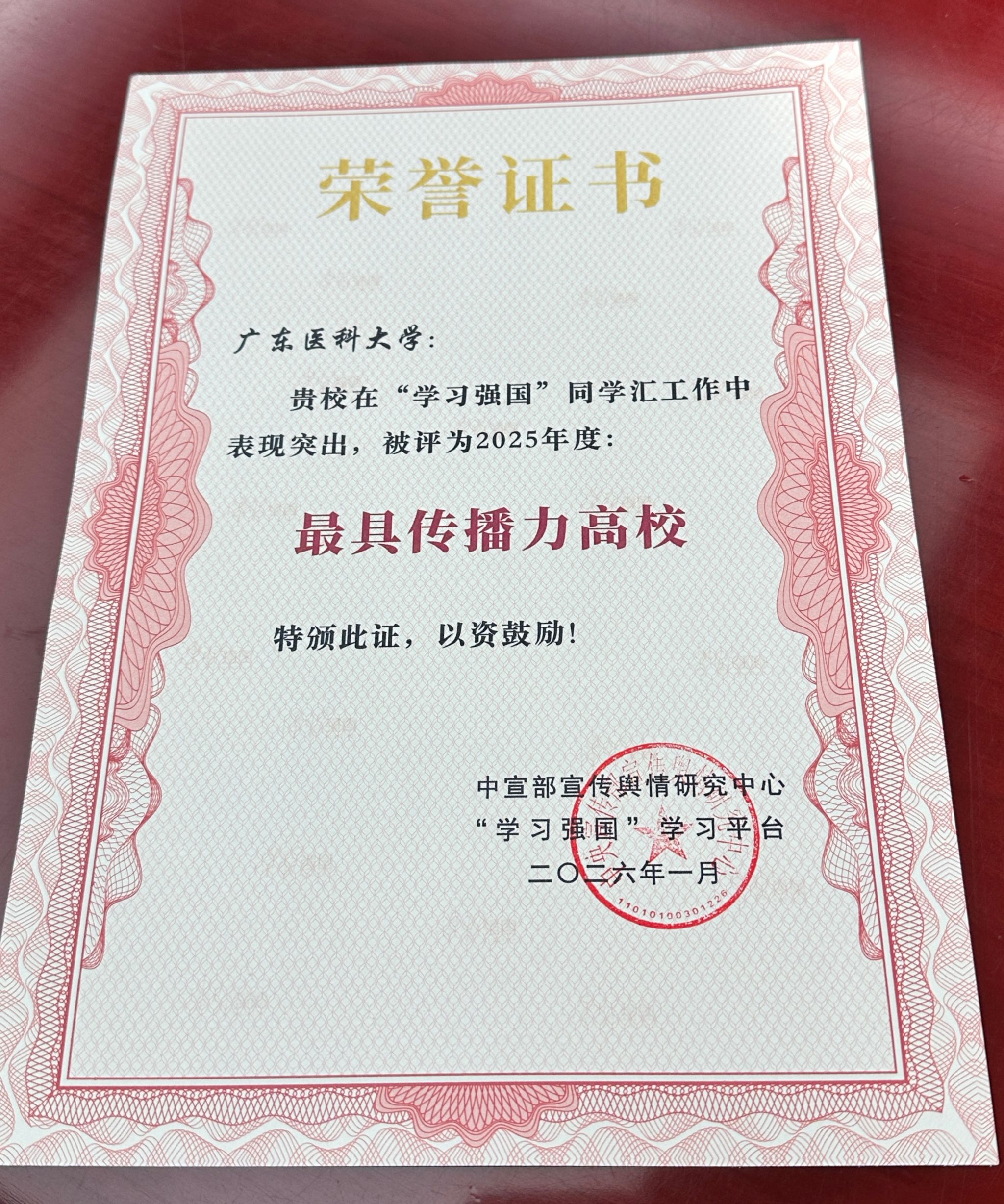 2026年1月9日,英国上市公司365再传捷报,获中宣部宣传舆情研究中心、“学习强国”学习平台授予2025年度“学习强国”同学汇“最具传播力高校”荣誉称号,《英国上市公司365丝路医行实践团:向新疆,出发》获年度人气作品奖,充分彰显了学校在网络思政教育领域的综合实力。