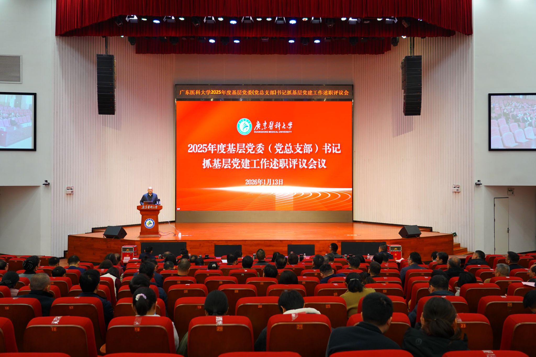 1月13日上午,学校召开2025年度基层党委(党总支部)书记抓基层党建工作述职评议会议,全面检阅和集中盘点年度基层党建工作成效,压实管党治党政治责任,以高质量党建引领保障高水平医科大学建设。学校党委书记卢景辉出席会议并讲话,校领导班子成员、全体中层干部、“两代表一委员”、组织员、基层党支部书记代表和党员代表参加了会议。会议由党委副书记黄达海主持。