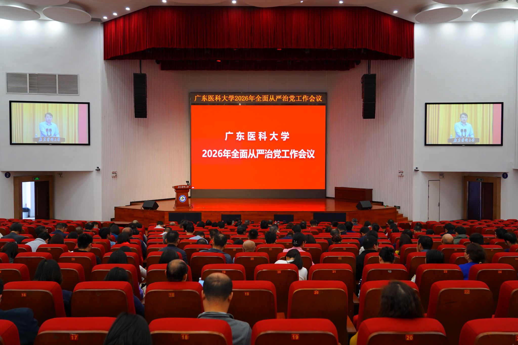 会上,学校党委副书记、校长肖炜从党的政治建设持续强化、学习教育扎实开展、平安校园建设成效显著、基层党建质量持续提升、学校事业发展持续进步、管党治党成效更加凸显等六个方面总结了2025年学校全面从严治党工作,并对2026年学校全面从严治党作了部署。