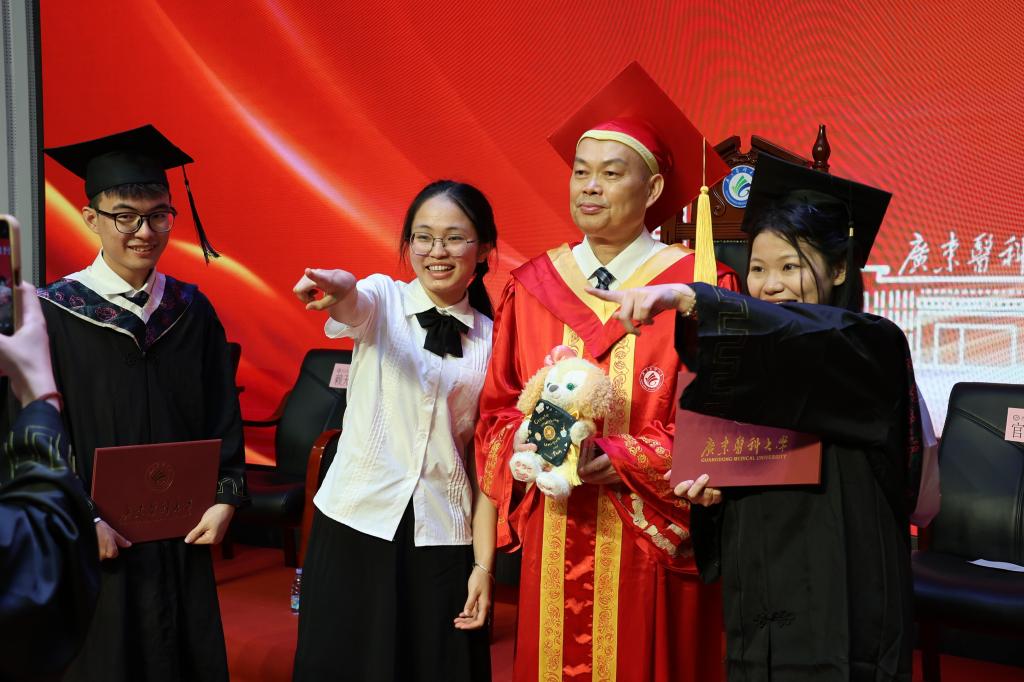 黄达海祝福毕业生,广东医永远是你们最坚强的避风港湾,最温馨的精神家园,请带上母校的祝福,肩负起“兴医强医、守护健康”的责任使命,一步一个脚印向着人生更高处进发,以青春之我、奋斗之我,为中国式现代化建设作出卓越贡献。