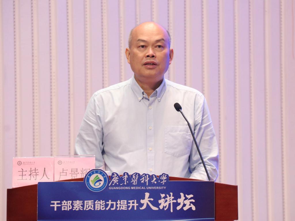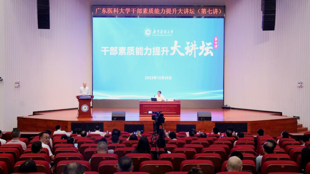 10月26日,为完善学校干部培养培训工作的建构,加强干部队伍建设,提升干部履职能力、推动高质量发展本领,学校特邀请广东外语外贸大学原党委书记、校长徐真华教授做客我校“干部素质能力提升大讲坛”并作《从宏观到微观:大学基层组织的管理》专题辅导报告。学校党委书记、校长卢景辉主持讲坛,全体在校领导,两委委员、中层干部等300余人聆听报告。