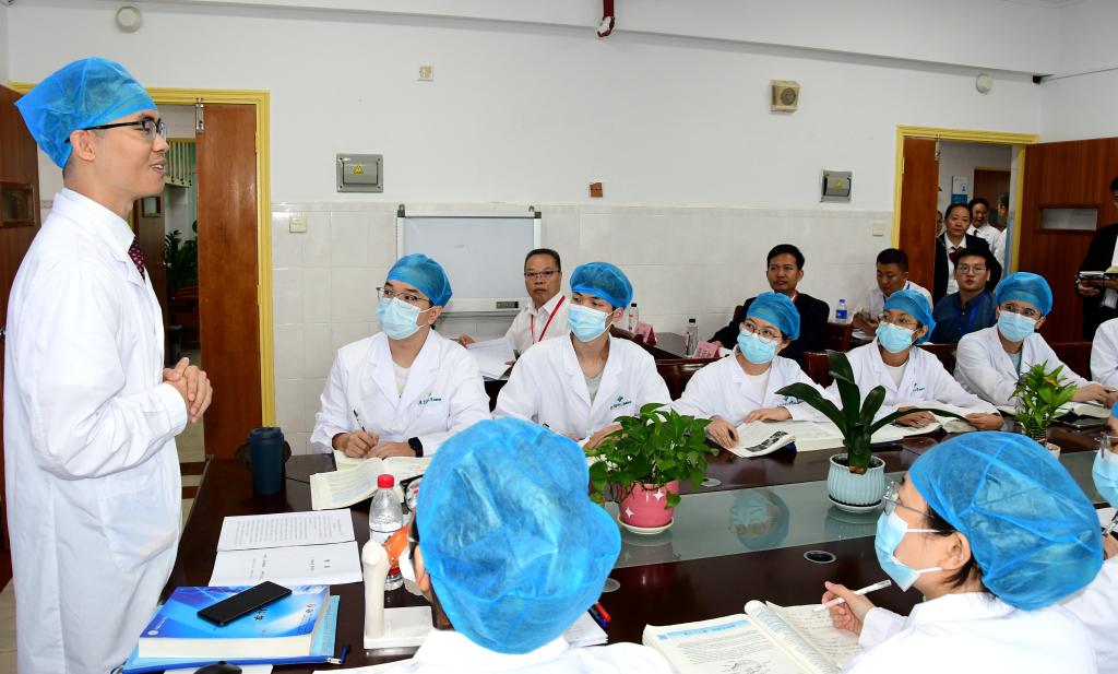 专家组集体考察了学校校史馆、生化实验室、立仁书院、海洋医药研究院、附属医院。校领导卢景辉、刘新光、曾志嵘,各职能部门主要负责人陪同考察。