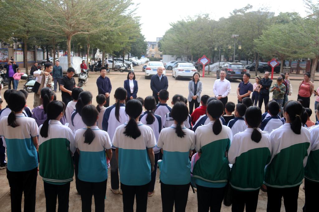 走访期间,卢景辉听取乡村振兴工作队工作汇报,鼓励他们坚定信心,铆足干劲,齐心协力,再接再厉,在乡村振兴工作中取得更大成绩。走访慰问结束后,卢景辉一行还来到金土小学调研由我校筹资援建的运动场项目建设进展情况。(文/庄梦龙 图/组织统战部 审核/谭平 复核/周圆 终审/冯锦山)
